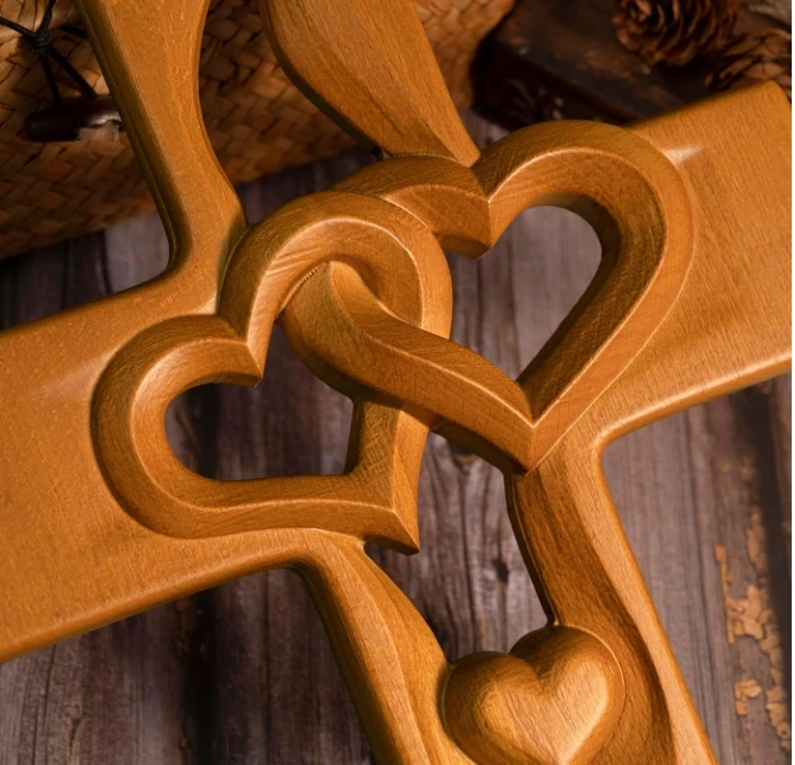 Handmade Wooden Dining Table with Carved Hearts Design - Rustic Home Furniture