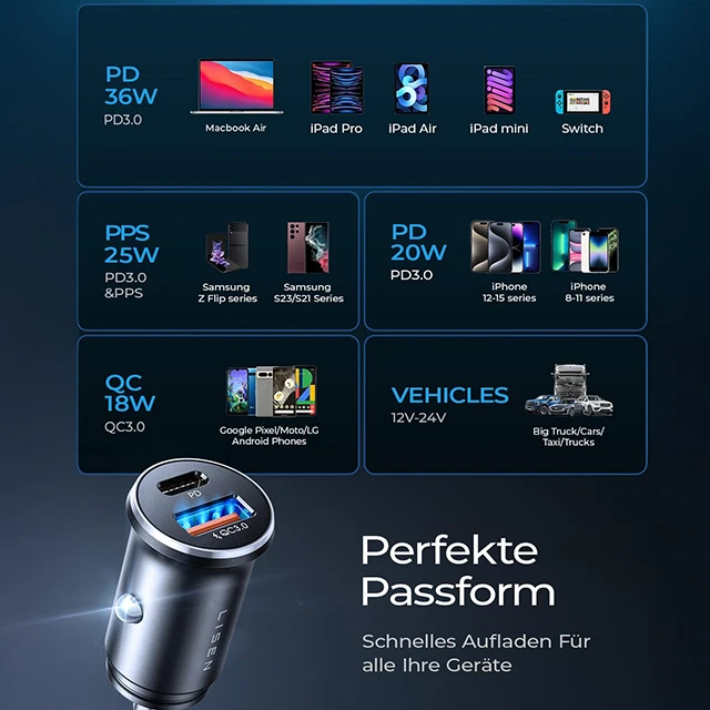 LISEN 54W Dual USB-C Fast Car Charger - 35Min Quick Charge for iPhone 16